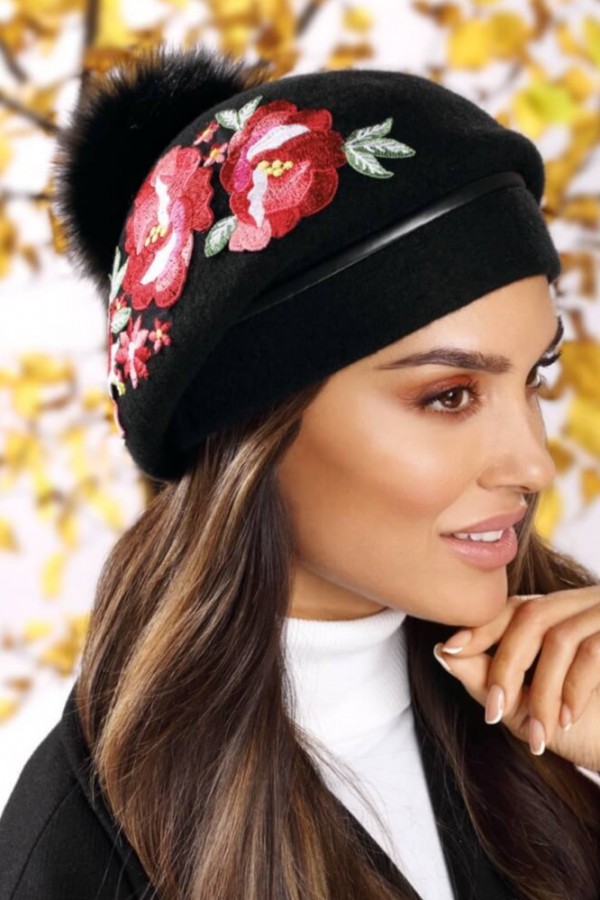 Caciula de dama stil bereta cu pompon din blanita.